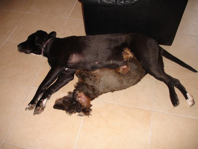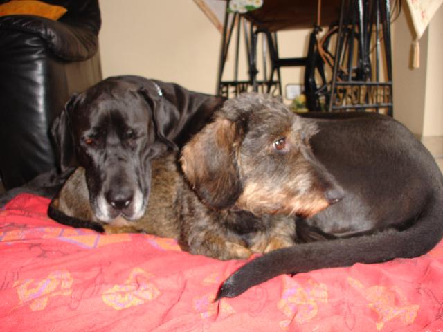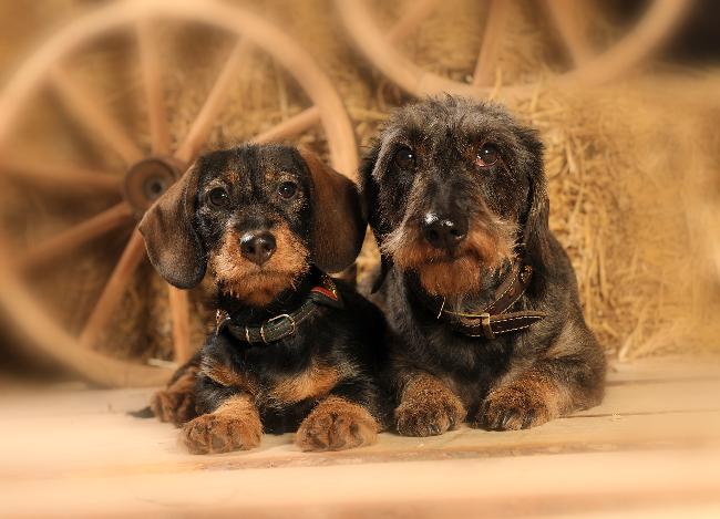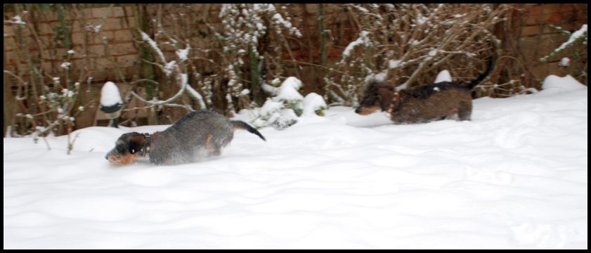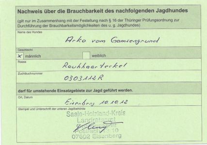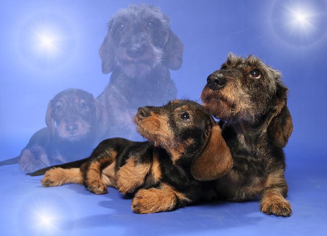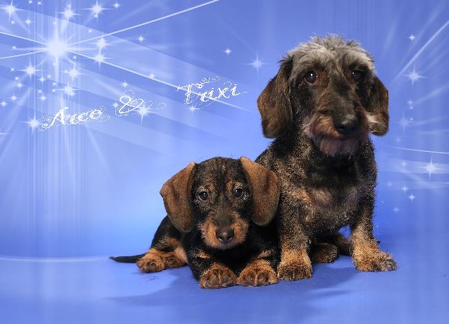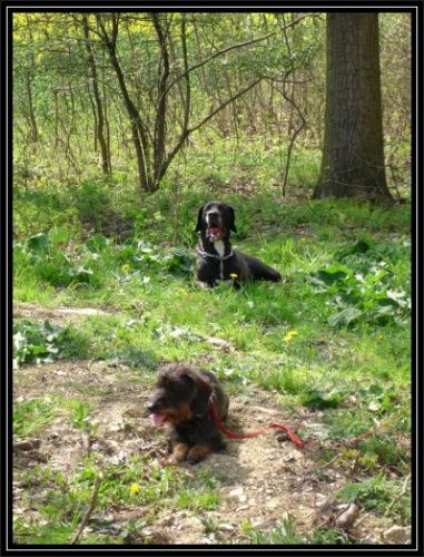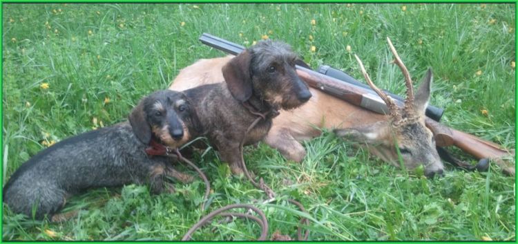 Weil Arko nun schon in die Jahre gekommen ist, haben wir für ihn die kleinen Teckeldamen Afra vom Steinfelsen, Rufname "Elfriede" und Trixi von den Densenbergen aufgenommen. Beide Hündinnen sollen Arko bei der Jagd zunächst unterstützen und später einmal ablösen, damit er dann in den Ruhestand treten kann.